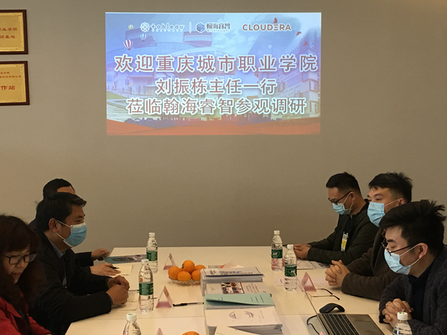 调研团队与重庆翰海睿智大数据科技有限公司的负责人展开了积极的交流。刘振栋简要介绍了大数据学院的基本情况以及此行的主要目的。调研团队与该单位负责人就大数据行业发展、技术需求、主要就业岗位、产业链和岗位链以及技术链三者关系、人才需求和培养、大数据技术应用课程设置等问题进行了深入探讨。