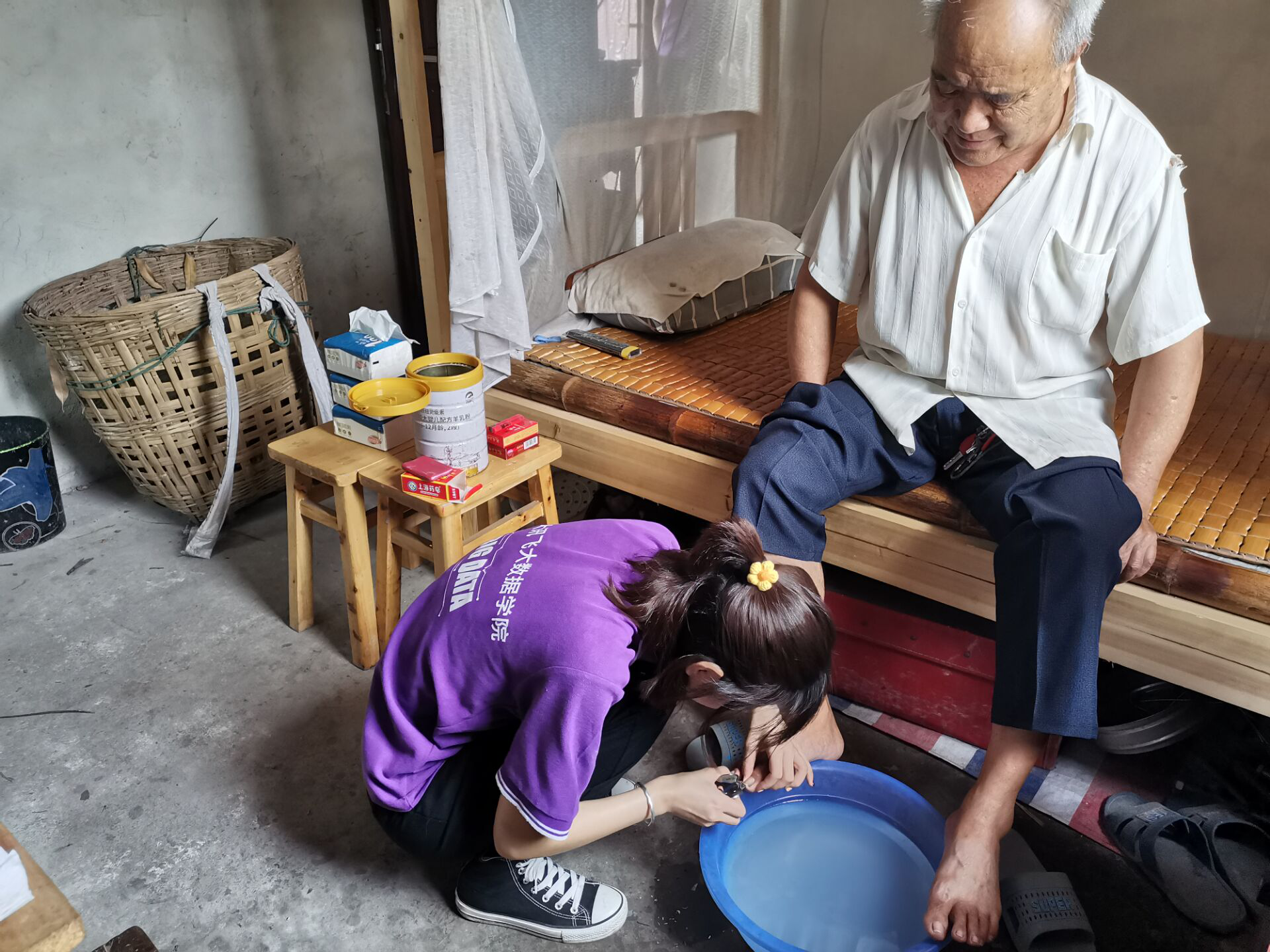 下午3点,为提高学生的素质,弘扬中华传统美德,增强同学们为社会服务的贡献意识,志愿者们来到天星村五保户新房“联建联管”地-----“九佬庄”。针对五保户年龄偏大、分散独居、不便照顾,以及房屋危旧改造去世后房产闲置的实际情况,临江镇大力倡导集中联建联管。通过集中联建方式,既节约土地,提高资金效益,同时又实现五保老人相互照应,方便管理。志愿者们坐在老人床沿上拉家常,关心老人们的生活与健康情况。在与老人们的交流中了解到,老人家们的子女都早早的外出打工去了,只有逢年过节才回一趟家,他们算是真的空巢老人。同学们不由得心生感慨,想到了自己的爷爷奶奶。随后,同学们端着热水为老人家洗脚、剪指甲,打扫厨房,劈柴洗衣、刷碗筷。同时,为年事已高的老人们送去大包小包的生活用品。看着老人们脸上止不住的笑容,志愿者们再苦再累也觉得非常值得。在这个活动中,两位书记说关心和关爱老人是我们大家共同的责任和义务,争取做到邻里和谐,邻里热心沟通,邻里相亲相爱,使整个天星村形成“爱老、敬老、助老”的良好氛围,为构建美好家园打下坚实的基础。
