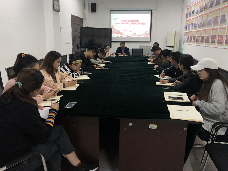 11月17日,科大讯飞大数据学院在明华楼206会议室召开了本学期第八次部门例会,党支部书记潘峰、全体教职工及企业老师参加了此次会议。会议由副院长刘振栋同志主持。